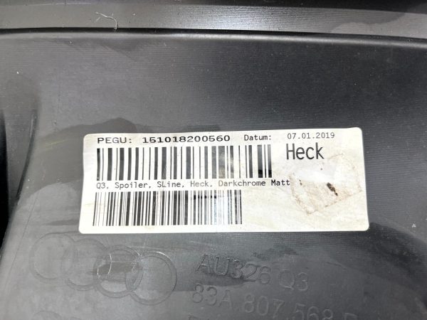 | Audi | Q3 | 2018 | Petrol SUV | FWD -- F3B | 35 TFSI | 1498cc 110KW 150HP DADA;DPCA;DXDB | Audi Q3 S-Line 2018 TO 2025 83A807568B Genuine |